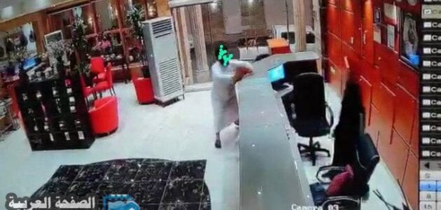 سجلت كامرات المراقبة في إحدى الفنادق في جازان في المملكة العربية السعودية قيام أحد النزلاء بالإعتداء بالأيدي على إحدى الموظفات في الفندق وهي تعمل في الإستقبال.
