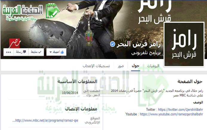 صورة من ال فيس بوك يتحقق من صفحة رامز قرش البحر