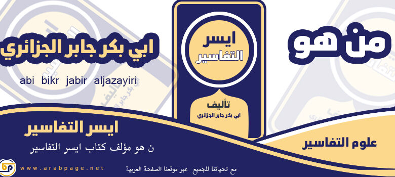 قد قام “أبو بكر جابر بن موسى بن عبد القادر بن جابر المشهور باسم أبي بكر الجزائري” بتأليف كتاب أيسر التفاسير، ولد “الجزائري” عام 1921م، وقد ولد في قرية” ليوة” في جنوب الجزائر.