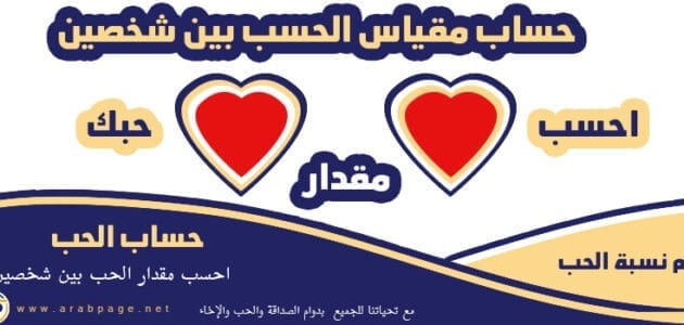 حساب مقياس الحب بين شخصين سواء اخوه او اثنين متزوجين وبين الصديقين والحبيبين كيف يمكنك التعرف على القياس وكم بالمئة التناسب والحب بين الشخصين من خلال مواقع وكذلك سكربت يقدمون خدمة حساب الحب والتوافق بينهما, وتأتي من ذلك مواقع الكترونية وكذلك تطبيقات إلكترونية يتم إنزالها من خلال الهواتف الجوالة.