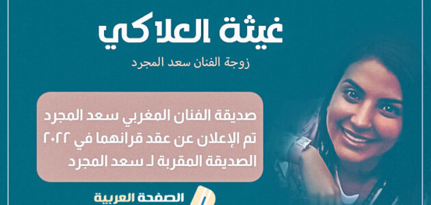 سوف نتعرف على زوجة الفنان المغربي سعد المجرد وهي غيثة العلاكي Ghaitha Al Alaki والتي تم الإعلان في وقت متأخر حول عقد قران ” زوجة الفنان المغربي سعد المجرد ” والذي يبلغ من العمر 37 عام.