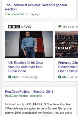 كما تحدثت قوقل بأنه تم من يوم الإربعاء 24 فبراير 2016, البدء في عملية إظهار علامة البرق بجوار المواقع المتوافقة والمبنية بخدمة AMP.