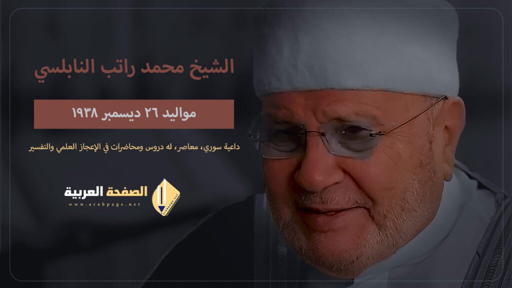 محمد النابلسي : داعية إسلامي محمد راتب النابلسي هو داعية سوري، معاصر، له دروس ومحاضرات في الإعجاز العلمي والتفسير، والمنهج العلمي والمعرفة، اشتهر بسلسلته عن أسماء الله الحسنى، وعن الشمائل النبوية. وهو رئيس هيئة الإعجاز القرآني، وله العديد من المؤلفات وشارك في العديد من المؤتمرات العالمية.