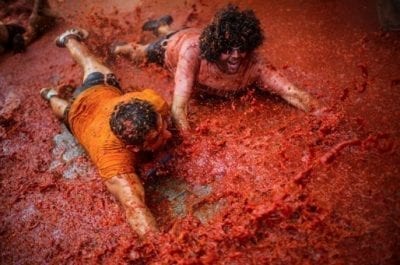 في مهرجان حضره المئات في مهرجان كبير للتراشق بالطمام في اسبانيا.