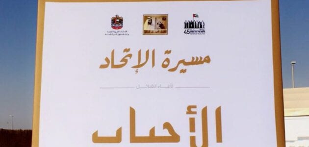 يشارك في مهرجان بعد ساعات من الأن اكثر من 80 قبيلة من قبائل الإمارات اليوم الاحد 4 دبيسمبر 2016 في مسيرة حاشدة مسيرة الإتحاد في احياء مهرجانات اليوم الوطني 45 لدولة الإمارات العربية المتحدة التي تنطلق من ابو ظبي من منقطة الوثبة اليوم.