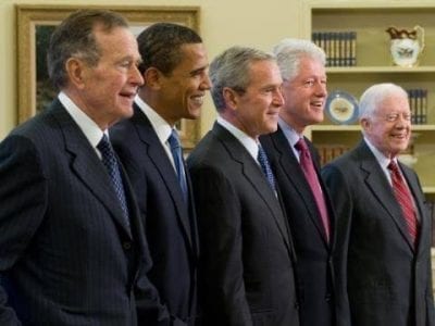 وحظر في حفل التنصيب خمسة رؤساء من رؤساء امريكا السابقين.
