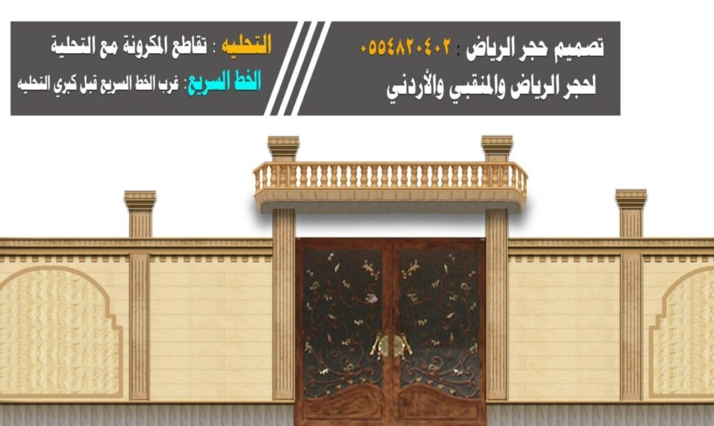 ومن التصاميم اليوم نقدم لكم تصميم سور من حجر الرياض وفيها حجر الرياض الكريمي والحجر الأصفر الرياض كما هو مبين في الشكل.